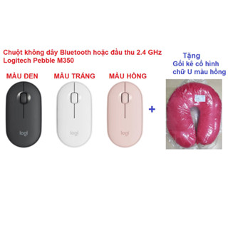 Chuột không dây Kết nối Bluetooth hoặc đầu thu 2.4 GHz Logitech Pebble M350 + Tặng Gối kê cổ màu hồng