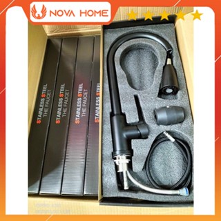 Chậu rửa Bát 1 hố Nova Home Inox 304 vòi rút thác nước, Bồn Rửa Chén 1 Ngăn Lớn Inox SUS304 đầy đủ Combo.