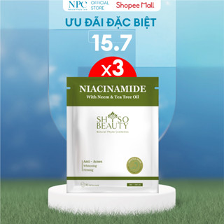 COMBO 3 mặt nạ SHSO Beauty Biocell Niacinamide 4% dành cho da mụn, chiết xuất lá Neem và tinh dầu tràm
