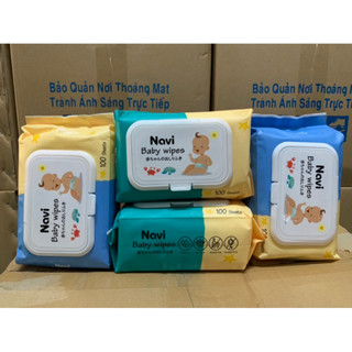 KHĂN ƯỚT NAVI 100 TỜ KHÔNG MÙI - MUA 6 GÓI TẶNG 10 KHẨU TRANG EM BÉ