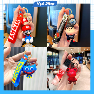 Combo 4 móc khóa Mario, Cậu Bé Bút Chì Shin, Huggy Wuggy, Bearbrick