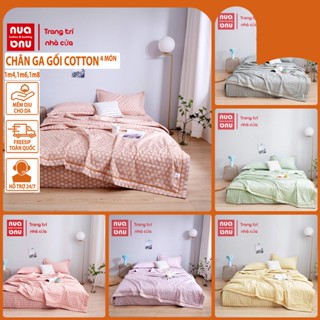 Bộ ga gối cotton set 4 món cùng chăn hè trần bông chất cotton mát mịn thoáng khí