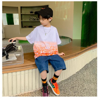 Bộ đồ tay ngắn cộc tay áo thun in cá mập quần jeans k29