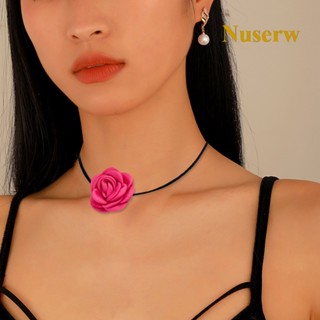 Vòng Cổ Choker Dây Nhung Đen Đính Hoa Trà Lớn Cho Nữ