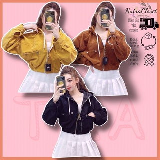 Áo khoác lửng ulzzang kaki nhung có nón quảng châu unisex