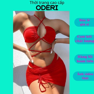 SET 3 MÓN Bikini, Đồ Bơi Đi Biển Hai Mảnh Áo Buộc Dây Quấn Eo Váy Rút Bên Hông SEXY ODERI MS01