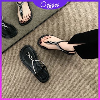 Oeggeo Xăng đan Xỏ Ngón Đế Bằng Quai Mảnh Co Giãn Hình Chữ T Đính Đá Cho Nữ
