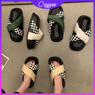 Oeggeo shop Dép Đế Lật Họa Tiết Lưới Chéo Bãi Biển Ngoài Trời Cho Nữ