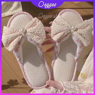 Oeteo Dép Đi Trong Nhà Đế Bằng Đính Nơ Xinh Xắn Cho Nữ