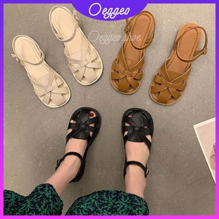 Oeggeo shop Xăng đan Đế Thấp Mũi Tròn Đan Dây Hở Lỗ Dành Cho Nữ