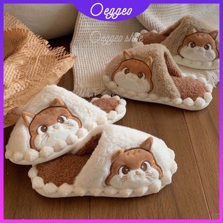 Oeteo Dép Bông Đi Trong Nhà Mũi Tròn Hình Mèo Dễ Thương Cho Nữ