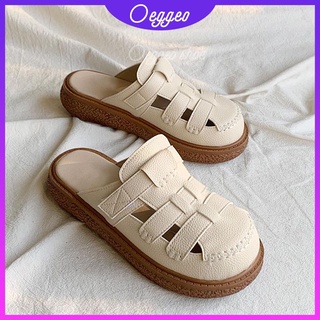 Oeggeo shop Đôi dép phẳng tròn đầu tròn Giày phụ nữ trang