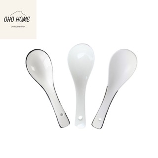 Muỗng sứ trắng trơn, muỗng sứ viền đen đẹp, thìa súp sứ