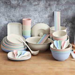 Bộ đồ ăn nhựa lúa mạch màu Pastel, bát tô chén dĩa lúa mạch - Dụng cụ ăn dặm an toàn
