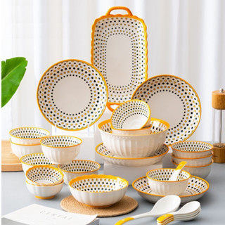 Chén Dĩa Phong Cách Bắc Âu Scandinavia Mùa Hạ, Bộ Bát Đĩa Decor Có Tay Cầm