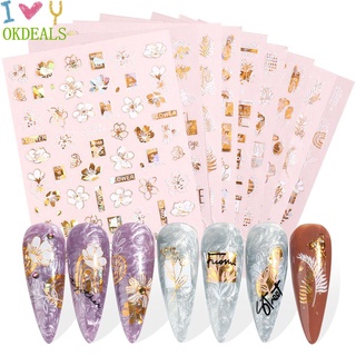 ღOKDEALSღ Decoration 3D Gothic Geometry Black White Flowers Nail Stickers Sliders Wraps Decal Leaves Floral DIY Manicure Hollow