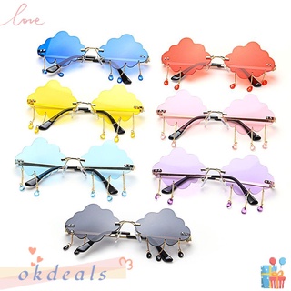 Kính Mát Không Viền Chống Tia UV400 Hình Đám Mây Phối Tua Rua Cổ Điển Thời Trang Cho Nam Và Nữ