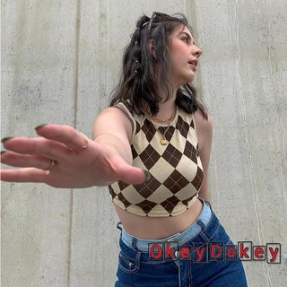 Áo Tank Top Dệt Kim Không Tay Viền Ren 2K Phong Cách Cổ Điển Cho Nữ