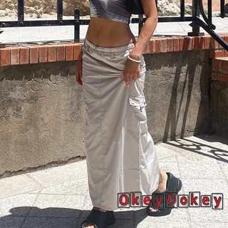 Chân Váy Dài Lưng Thun Màu Trơn Thiết Kế Dây Rút Có Nhiều Túi Thời Trang Cho Nữ