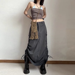 Chân Váy Dài y2k Có Dây Rút Màu Sắc Đơn Giản Thời Trang Mùa Hè Cho Nữ (lỏng lẻo)