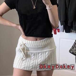 OKDK-y2k Chân váy ngắn đan eo thiết kế dây rút eo thấp cho nữ