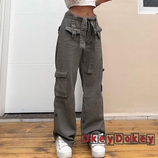 Quần Baggy Baggy Dáng Rộng Eo Co Giãn Phối Túi Phong Cách Punk Cá Tính Cho Nữ OKDK-Y2K