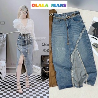 Chân Váy Jeans Nữ Lưng Cao Xã Tua Dài Qua Gối Chất Vãi Dày Dặn [ MS 02 ]