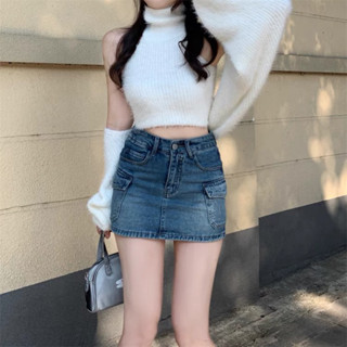 Quần sọt jean Nữ - Quần bò Nữ Lưng Cao Mix Túi Dài Phong Cách Ulzzang