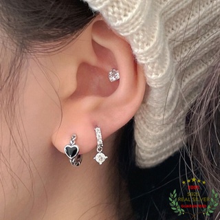 Bông Tai Bạc Thái S925 Khoen Tròn Trái Tim Đen Black Heart Trẻ Trung Cá Tính | Khuyên Tai Nữ Trang Sức Bạc Thời Trang
