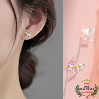 Bông Tai Bạc S925 Butterfly Ngũ Sắc Dễ Thương | Khuyên Tai Nữ Trang Sức Bạc Thời Trang