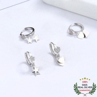 Bông Tai Bạc S925 Khoen Tròn Tua Rua Ngôi Sao - Trái Tim Rơi Xinh Xắn | Khuyên Tai Nữ Trang Sức Bạc Thời Trang