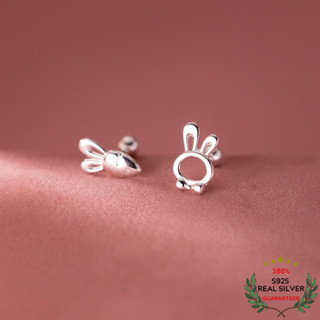Bông Tai Bạc S925 Thỏ & Cà Rốt Chốt Bi Vặn Bất Đối Xứng Dễ Thương | Khuyên Tai Nữ Trang Sức Bạc Thời Trang