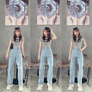 Quần bò ngố ống rộng 5 khuy cạp cao cực chất kèm ảnh thật