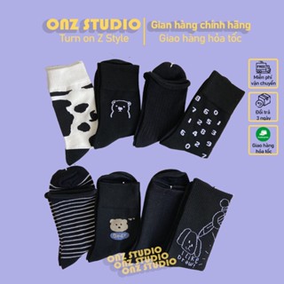 Vớ cotton ONZ hoạ tiết đơn giản - Tất chân nam nữ bò sữa cổ cao mềm mịn co giãn phong cách trẻ trung năng động TA02