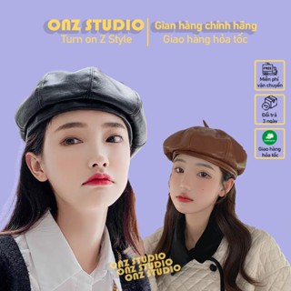 Mũ nồi beret nữ ONZ da PU cao cấp - Nón beret phong cách vintage Hàn Quốc nữ tính BR01