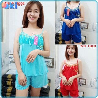 Đồ Bộ Thun Lạnh 2 Dây OoKi Bộ Quần Áo Nữ Mặc Nhà Co Giãn 40-65Kg
