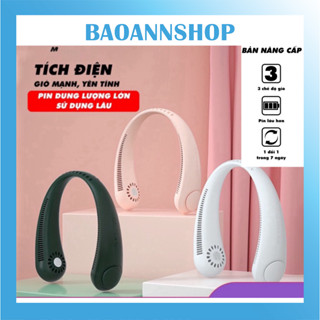 Quạt đeo cổ mini không cánh usb tích điện không dây, thời trang, 3 chế độ gió thể thao siêu mát tiện lợi