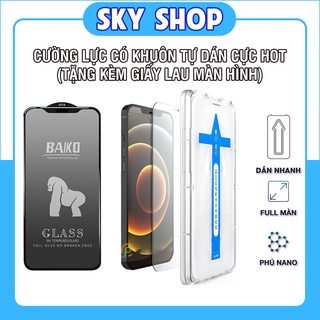 Kính Cường Lực Iphone Full Màn Khuôn Khung Khay Tự Dán và Baiko Màng Che Bụi 7/8/7plus/x/xr/xs/11/12/13/14/pro/max