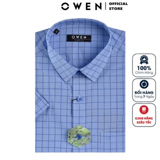 Áo Sơ Mi Nam Ngắn Tay Owen AR22947NT Somi Cộc Tay Công Sở Cao Cấp Màu Xanh Kẻ Caro Vải Lô Hội Mềm Mát Dáng Suông Có Túi