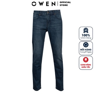 Quần Jean Nam Quần Bò Hàng Hiệu Owen QJSL221492 Màu Xanh Đậm Dáng Slim Fit Ống Côn Vải Denim Cotton Cao Cấp Co Giãn