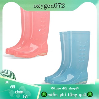 Oxygen072 Giày đi mưa cao không trơn trượt thấm nước PVC trong suốt với vải bông sang trọng cho phụ nữ người lớn