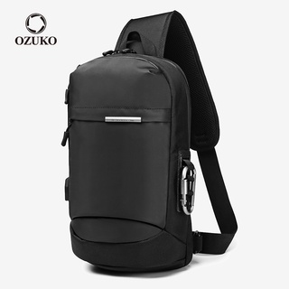 Túi đeo chéo trước ngực OZUKO chống thấm nước có cổng sạc USB thời trang dành cho nam