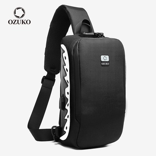 Túi đeo chéo OZUKO chất liệu cứng cáp kháng nước có cổng USB chống trộm tiện lợi cho nam