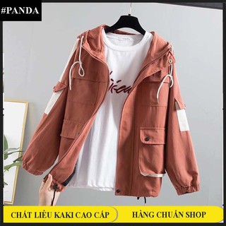 Áo khoác kaki nữ hoàng mẫu mới có mũ và túi trong đặc biệt form lững 38-58kg tại Panda Store