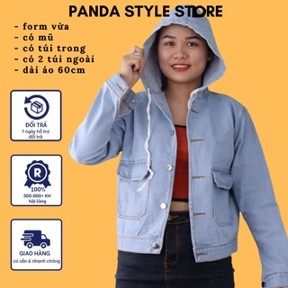 Áo khoác jean nữ XANH CÓ MŨ CÓ 2 TÚI TRONG CÓ 2 TÚI NGOÀI cao cấp form 40-58kg Panda.