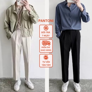 Quần baggy nam ống rộng PANTONI vải lụa hàn co giãn, không nhăn không xù loại quần tây âu Premium thời trang