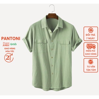 Áo Đũi Nam Cổ Bẻ Áo Sơ Mi Đũi Có Cổ Cộc Tay Túi Hộp Pantoni (SMD119)