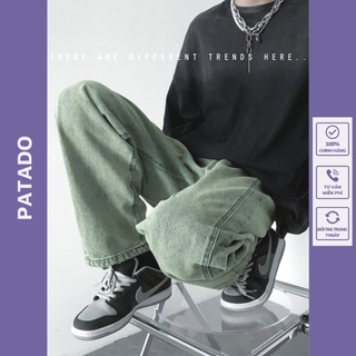 Quần jean nam xanh rêu PATADO ống rộng vải jeans cao cấp phong cách Hàn Quốc 2022