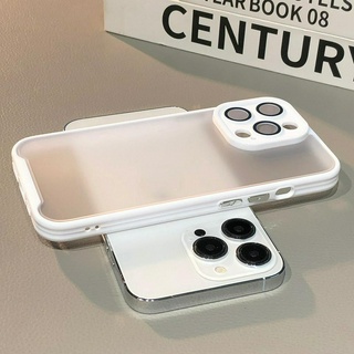 Ốp Điện Thoại Acrylic Cứng Mặt Nhám Màu Trắng Kèm Miếng Dán Bảo Vệ Ống Kính Máy Ảnh Cho compatible for iPhone 11 12 13 14 pro max