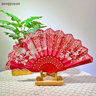 [pengyuyan] Quạt Xếp Cầm Tay Bằng Lụa Phối Ren Hoa Cầm Tay Cho Tiệc Cưới [Mới]